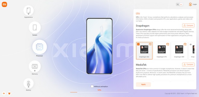 Ter um smartphone totalmente personalizado ainda é algo inviável para a indústria de tecnologia atual, mas a Xiaomi propõe que os usuários brinquem com isso em um site recém-lançado, que traz um elemento lúdico para essa experiência. Depois de trazer um jogo semelhante tempos atrás, a marca chinesa liberou nesta semana um novo site (que só tem opções de idiomas em russo e inglês) permitindo que o usuários escolha desde a tela até a plataforma e especificações de memória, câmeras e armazenamento, e monte seu smartphone dos sonhos.