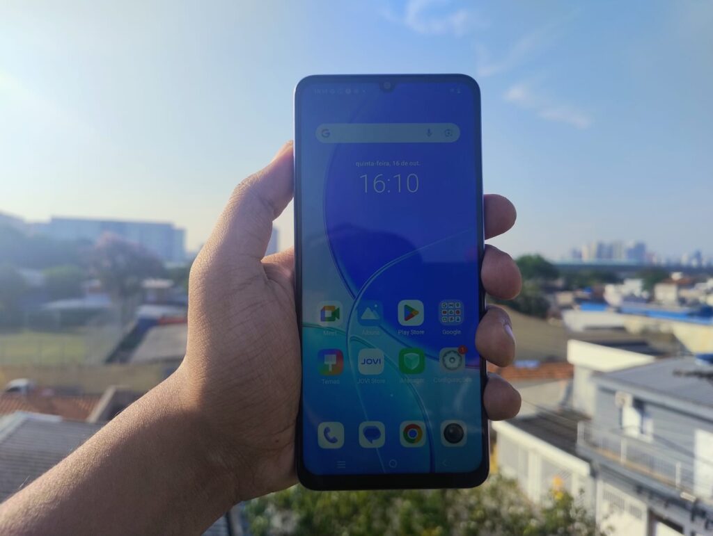 O JOVI Y29s 5G aposta em uma proposta ousada: unir custo-benefício e durabilidade. O aparelho chega com certificação IP64, que o protege contra poeira e respingos d’água, além de um reforço de resistência contra pequenas quedas, o que a marca classifica como “nível militar”. Esse é um ponto raro em smartphones na faixa dos R$ 2 mil e pode agradar usuários que priorizam robustez.