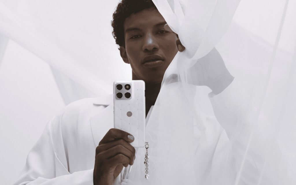 O motorola edge 70 já é considerado um dos dispositivos mais finos em sua categoria, e a edição especial eleva seu design ao máximo. Os cristais da Swarovski são embutidos no aparelho, adicionando um toque etéreo que visa trazer paz e foco de volta à vida digital dos usuários, celebrou a união das três marcas, lembra Ruben Castano, VP de Design, Marca e Experiência do Consumidor da Motorola.