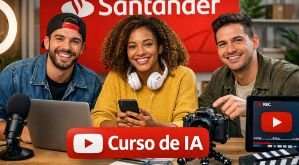 Oportunidade inédita de 2026: Bootcamp gratuito “Santander AI Youtube Creator” vai transformar iniciantes em profissionais com ajuda de inteligência artificial;…